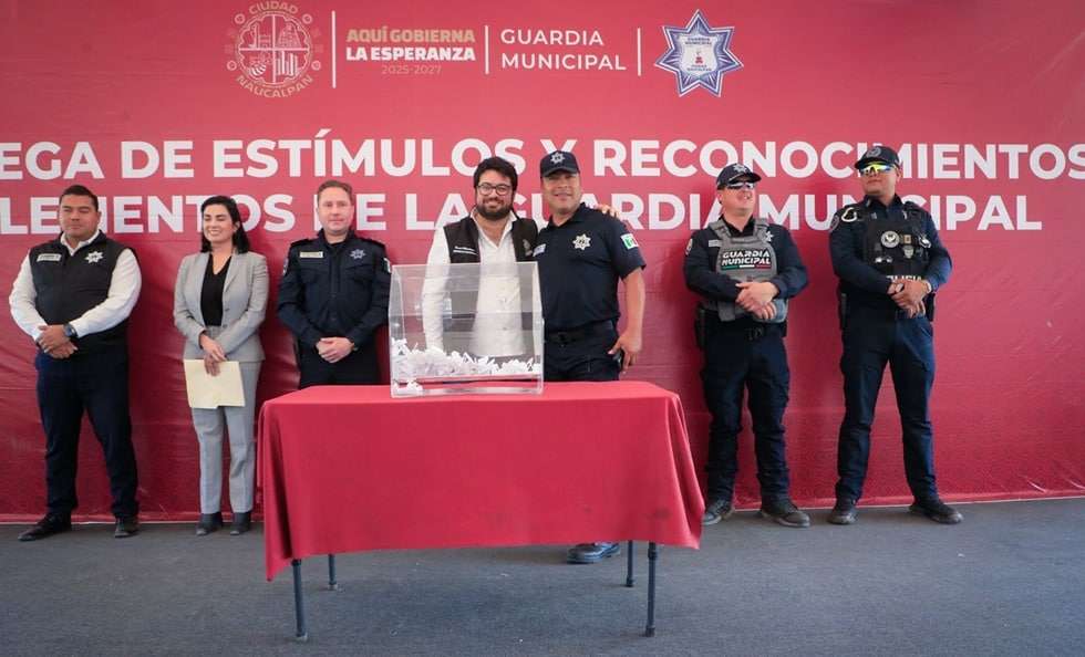 Se entregaron estímulos y reconocimientos a elementos de la Guardia Municipal de Naucalpan, en un acto donde también se integraron 100 cadetes a la corporación y se dotó de cámaras corporales al personal de Tránsito, además de rifarse cinco vehículos eléctricos.