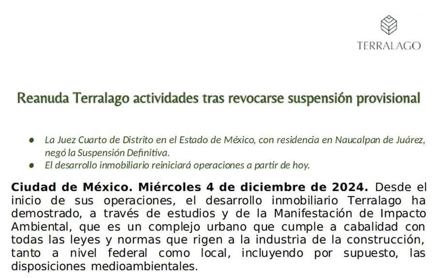 Pese a las críticas, los desarrolladores de Terralago afirman que el complejo será sustentable, con plantas de tratamiento de agua y un sistema de “descarga cero”, además de buscar certificaciones internacionales. No obstante, para muchos residentes, el costo ambiental y la aparente contradicción entre discurso y acciones gubernamentales siguen siendo motivo de indignación.