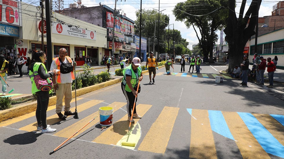 El pasado 25 de agosto las actividades comenzaron sobre el Parque Revolución y el corredor de la avenida 16 de Septiembre, con la pinta artística de bahías de ascenso y descenso de transporte público y cruces peatonales, con el fin de mejorar el tránsito y generar seguridad vial tanto a automovilistas como a peatones y personas con discapacidad.