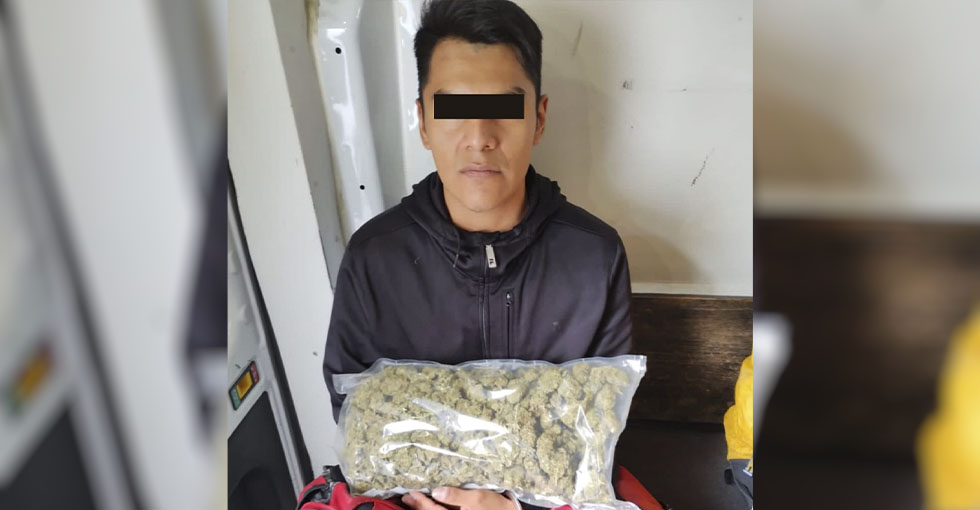 Al hallarle la bolsa de plástico con hierba verde seca, el sujeto fue asegurado y trasladado a la Fiscalía Regional de Naucalpan como probable responsable de delitos contra la salud en su modalidad de narcomenudeo.