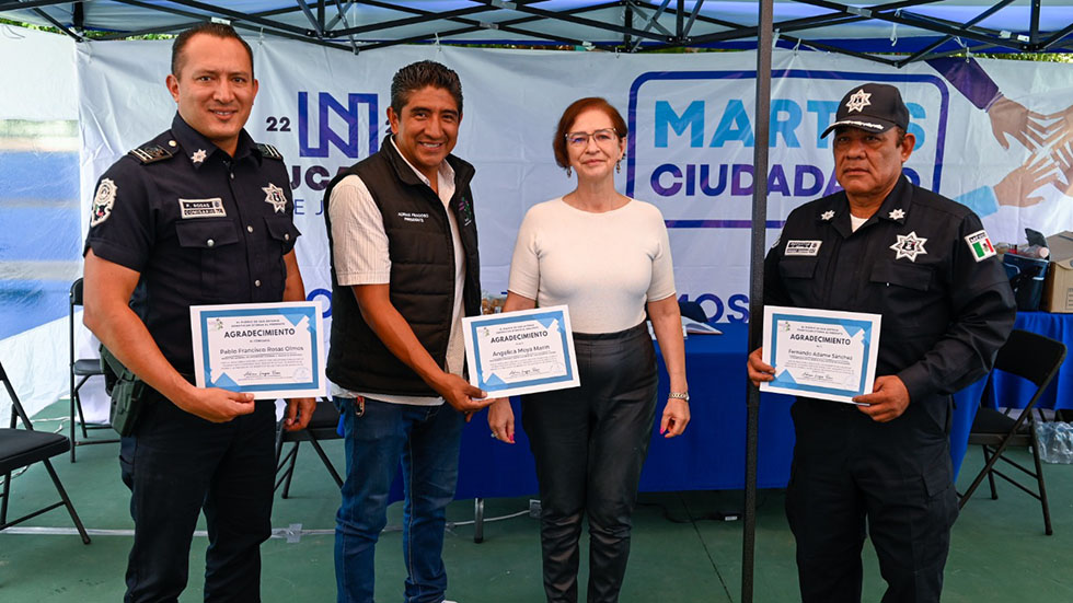 Durante el ‘Martes Ciudadano’ realizado en el Deportivo San Antonio Zomeyucan, vecinos de esta comunidad entregaron a la alcaldesa Angélica Moya Marín un agradecimiento por reforzar la seguridad en la pasada fiesta patronal, ya que registró saldo blanco, cuando en años anteriores se han presentado balazos, arrancones de motocicletas, venta de alcohol e incluso accidentes fatales.