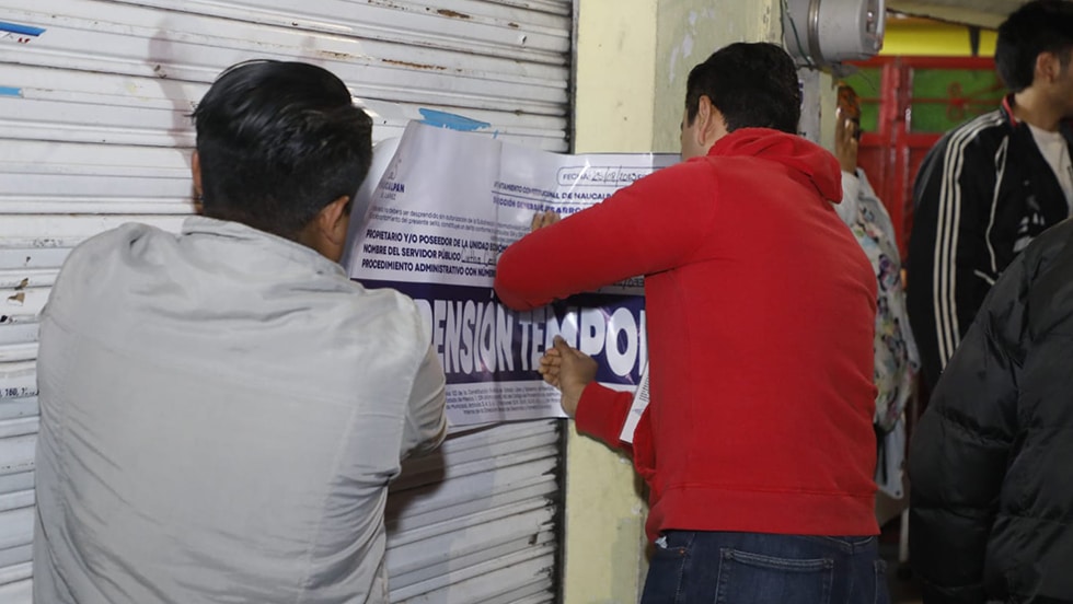 Autoridades de Naucalpan suspendieron siete establecimientos que vendían bebidas alcohólicas de manera irregular, durante operativos en los que participaron personal de las áreas de Normatividad Comercial y Concertación Comercial del ayuntamiento, las policías municipal y estatal, Ejército Mexicano y Guardia Nacional.